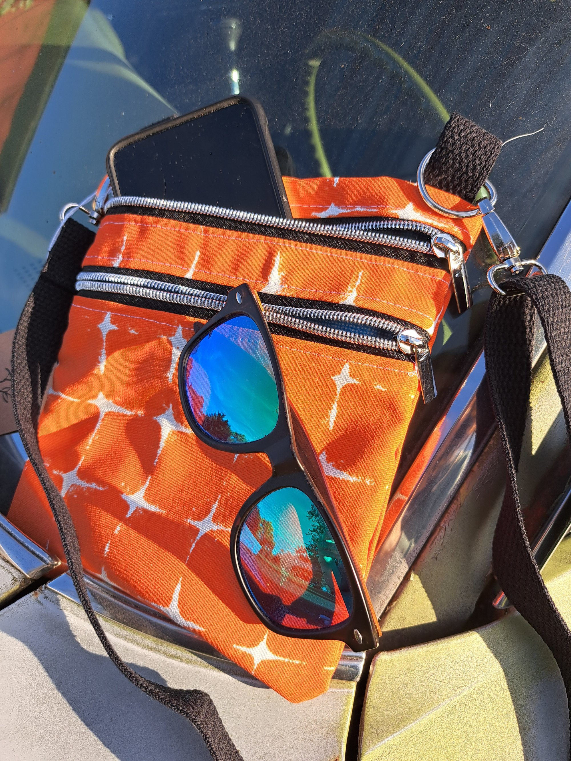 Are you looking for something truly one-of-a-kind? Something lightweight and ready for adventures? Perhaps it's just big enough for your essentials and a snack? If so, this gorgeous bag is ready for you! It has two zipper pockets and an adjustable strap.